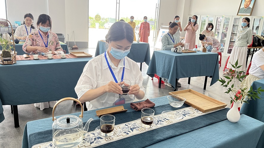 5月26日,隨州神農(nóng)茶業(yè)職業(yè)技能培訓(xùn)學(xué)校2022年第一批茶藝師培訓(xùn)考核在神農(nóng)茶業(yè)集團(tuán)多功能廳開展。參考學(xué)員以玻璃杯茶藝、蓋碗茶藝、自創(chuàng)茶藝等多種不同形式的茶藝表演呈現(xiàn)給評委,大家在一起相互學(xué)習(xí)交流促進(jìn)提升茶藝專業(yè)技能,本批參賽表演茶藝的學(xué)員均全部過關(guān)。
