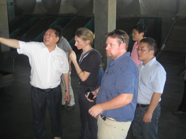 美國客人參觀生態(tài)茶園觀并察看太陽能誘蟲燈