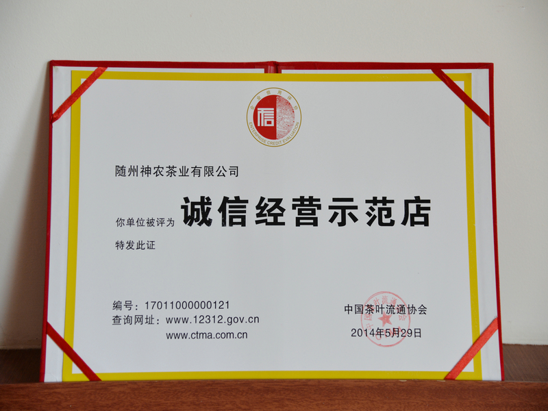 被中國(guó)茶葉流通協(xié)會(huì)評(píng)為“誠(chéng)信經(jīng)營(yíng)示范店”