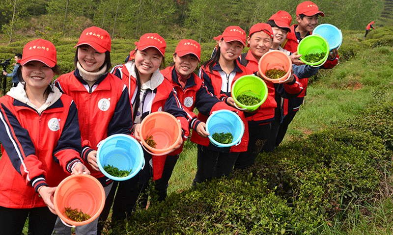 4月11日,在新建的游客中心即將開業(yè)之際,云峰山萬畝茶園風(fēng)景區(qū)迎來了今年第一個上千人的研學(xué)旅行團隊。