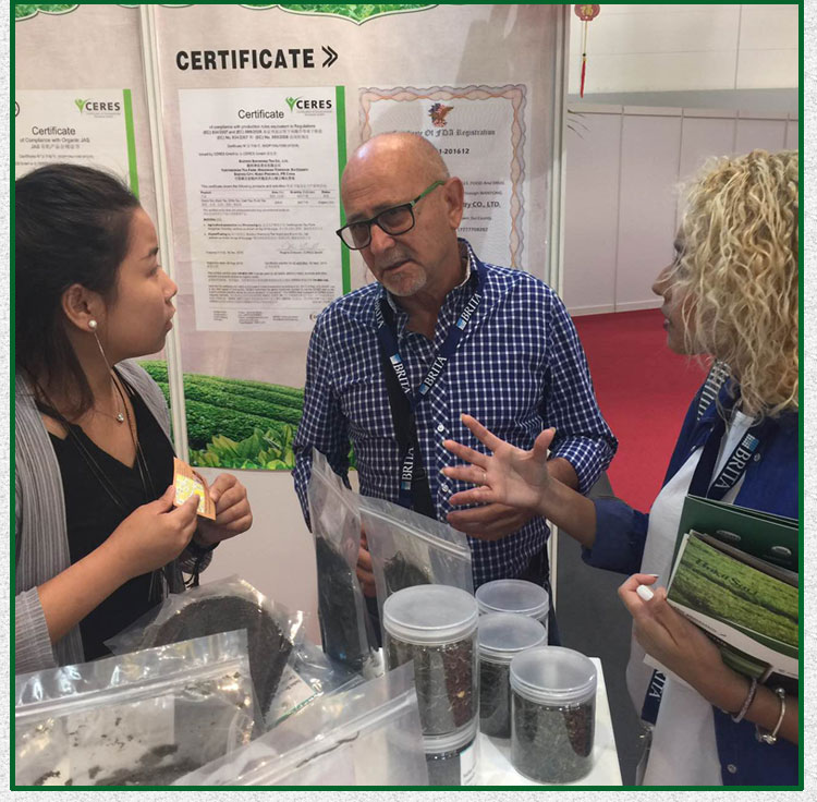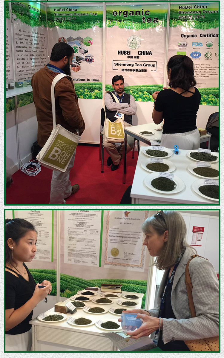 公司外貿工作人員在德國漢堡參加茶博會,下圖為展會現(xiàn)場一角: