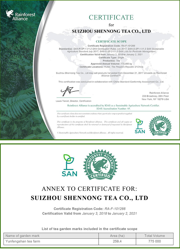 公司通過(guò)雨林聯(lián)盟認(rèn)證